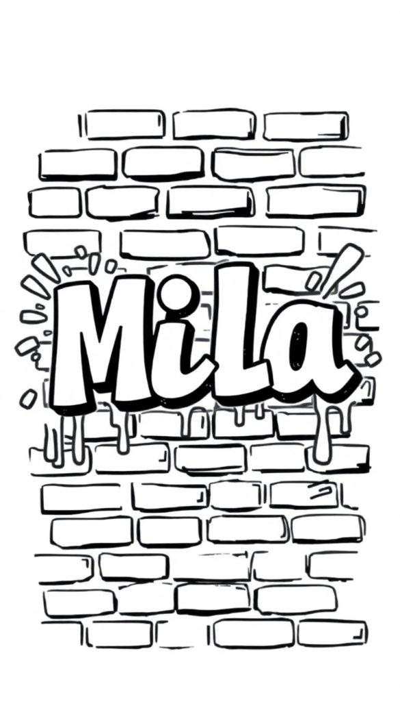 Spuit je eigen graffiti kunst! 🎨 Met deze te gekke kleurplaat maak je van de naam Mila een echte straatkunstwerk. Kies je favoriete kleuren en laat je creativiteit de vrije loop! Een stoere kleurplaat voor echte kunstenaars. Wat voor kleuren ga jij gebruiken voor de naam Mila en de bakstenen muur? Deel je mooiste creatie met ons!