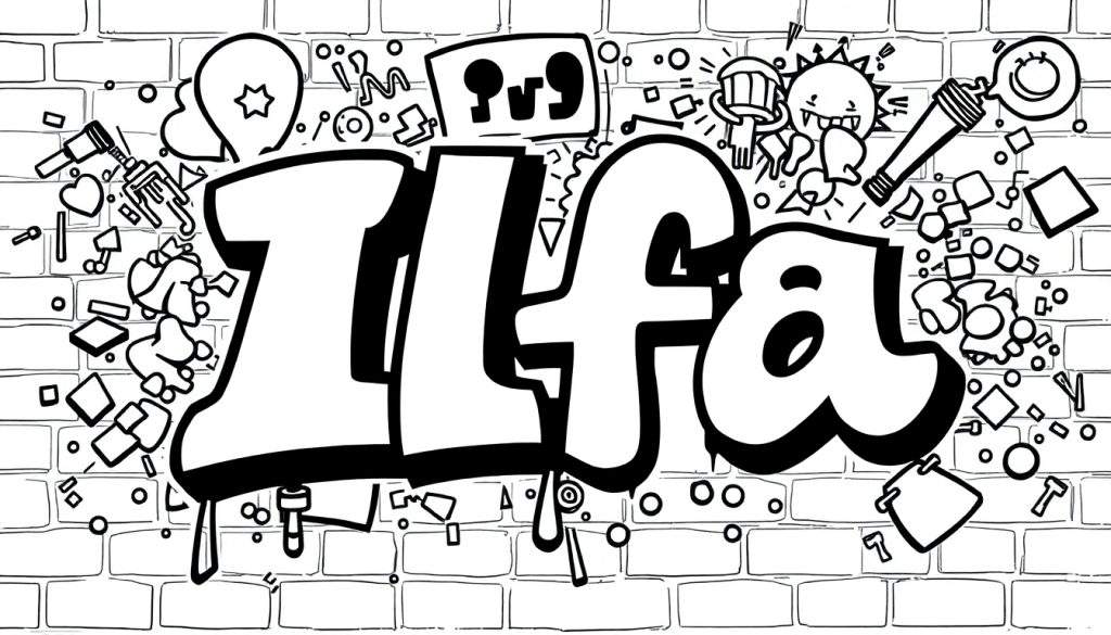 Kijk eens wat een gave kleurplaat! ✨ De naam Ilfa is supermooi versierd met vrolijke stippen, sterretjes en gekke vormen. Kun jij ze inkleuren met alle kleuren van de regenboog? 🌈 Misschien maak je er wel een echt superhelden-logo van! Of een geheim teken voor je vriendjes? 🤫 Wees creatief en laat je mooiste Ilfa-creatie zien! Dit is jouw kans om een meesterwerk te maken!
