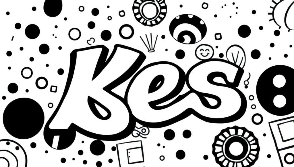 Kijk eens naar deze supercoole kleurplaat! Graffiti letters met de naam ‘Kes’ en een achtergrond vol grapjes en feestjes! 🥳 Van vrolijke stipjes tot gekke bloemetjes, alles mag! Word jij de kunstenaar die hier mooie kleuren aan toevoegt? Pak je stiften en maak dit een meesterwerk! 🎨 Jouw kleuren maken het nog vrolijker! Veel plezier met deze unieke kleurplaat!