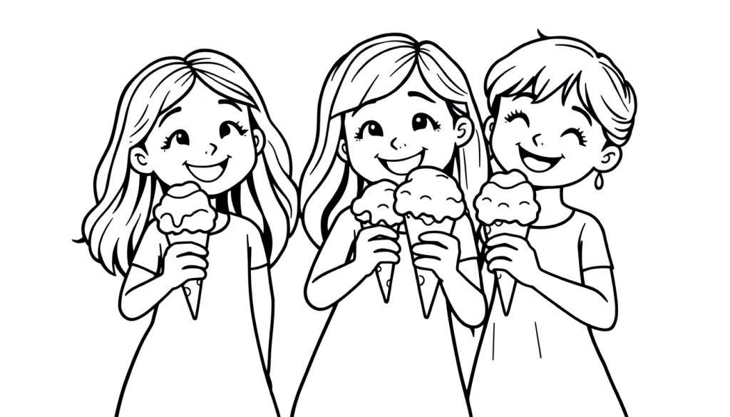 Vrolijke Meisjes en Hun Kleurplaat met IJsjes