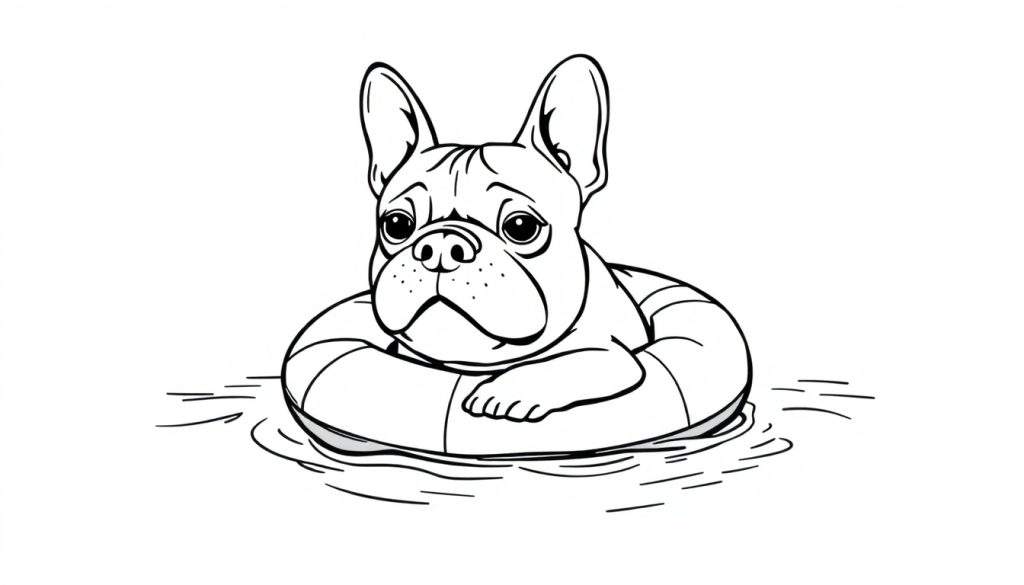 Kleurplaat: Franse Bulldog in de Zwemband!