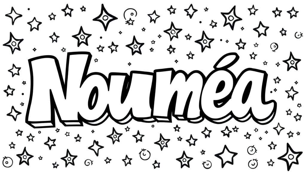 Klaar om te kleuren! 🎨✨ Deze gave kleurplaat met ‘Nouméa’ in coole graffiti letters is perfect voor creatieve uurtjes. Versierd met fonkelende sterren en vrolijke cirkels, kun jij deze tekening tot leven brengen met jouw favoriete kleuren? Pak je stiften, potloden of krijtjes en laat je fantasie de vrije loop! Maak van deze zwart-witte Nouméa een super kleurrijk meesterwerk. Welke kleuren ga jij kiezen? Laat het ons weten in de reacties! #Kleurplaat #Noumea #Creatief #Kinderkunst #Kleurplezier