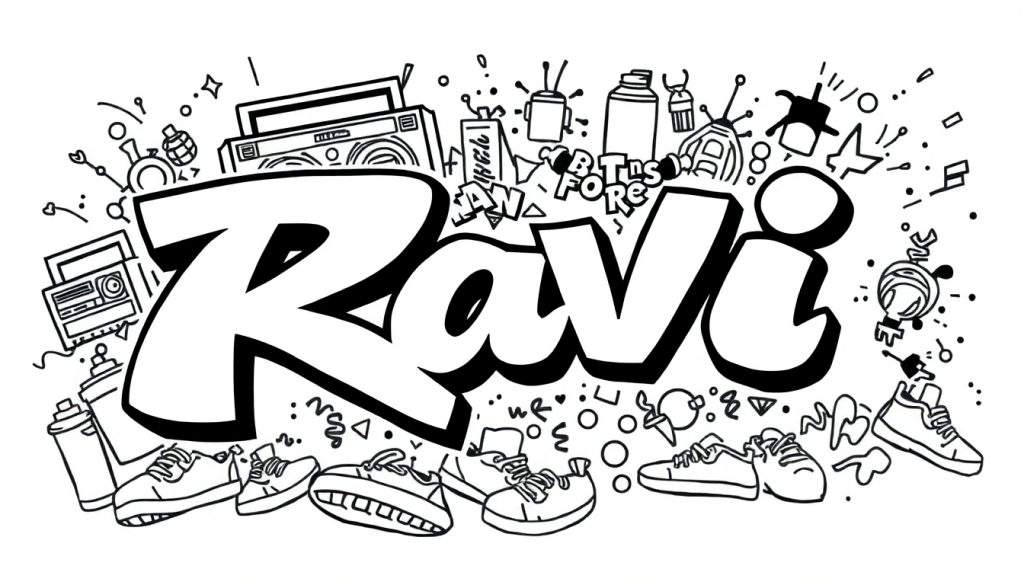 Hey Ravi! 🎉 Klaar om te kleuren? Duik in deze te gekke graffiti-kleurplaat speciaal voor jou! We hebben supervette schoenen 👟, coole boomboxen 📻 en zelfs spuitbussen 🎨 getekend. Alles wat je nodig hebt voor een creatieve sessie! Vergeet niet je mooiste kleuren te pakken en dit plaatje tot leven te brengen. Laat je fantasie de vrije loop en maak er een meesterwerk van! Veel kleurplezier, stoere kleurder! ✨