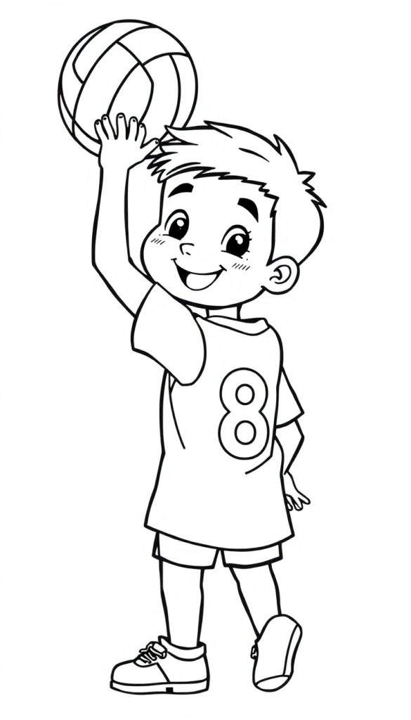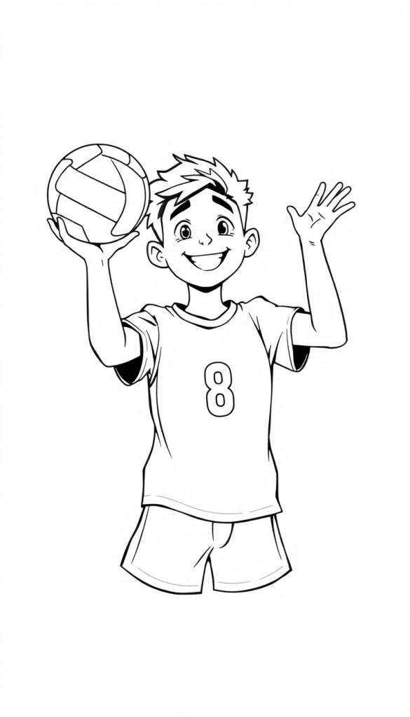 Zet je schrap voor deze superleuke kleurplaat! 🤩 Een vrolijke jongen staat klaar om te volleyballen, met rugnummer 8 pronkend op zijn shirt. Zie je hoe blij hij kijkt met de bal in zijn hand? 🏐 Hij lijkt wel te zeggen: ‘Kom op, wie wil er tegen mij spelen?’ Pak je kleurpotloden en maak deze sportieve kerel helemaal van jou! 🖍️ Of hij nu aan het serveren, passen of smashen is, jij bepaalt de kleuren. Wordt het een felgekleurd tenue of ga je voor een retro look? Laat je creativiteit de vrije loop en maak van deze kleurplaat een meesterwerk! 💪