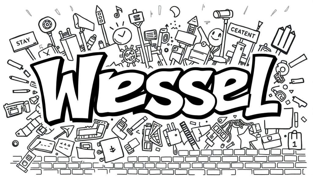 Hey Wessel! Hier is jouw supercoole graffiti kleurplaat! 🚀 Wist je dat graffiti net als een geheimtaal is? Vroeger tekenden mensen dingen op muren om verhalen te vertellen. Nu kun jij ook jouw eigen verhaal maken op deze kleurplaat! Pak je potloden en laat je fantasie de vrije loop. Misschien maak je de raket wel super snel of de klok die precies jouw lievelingsuur aangeeft! Veel plezier met kleuren, jonge kunstenaar! 🎉