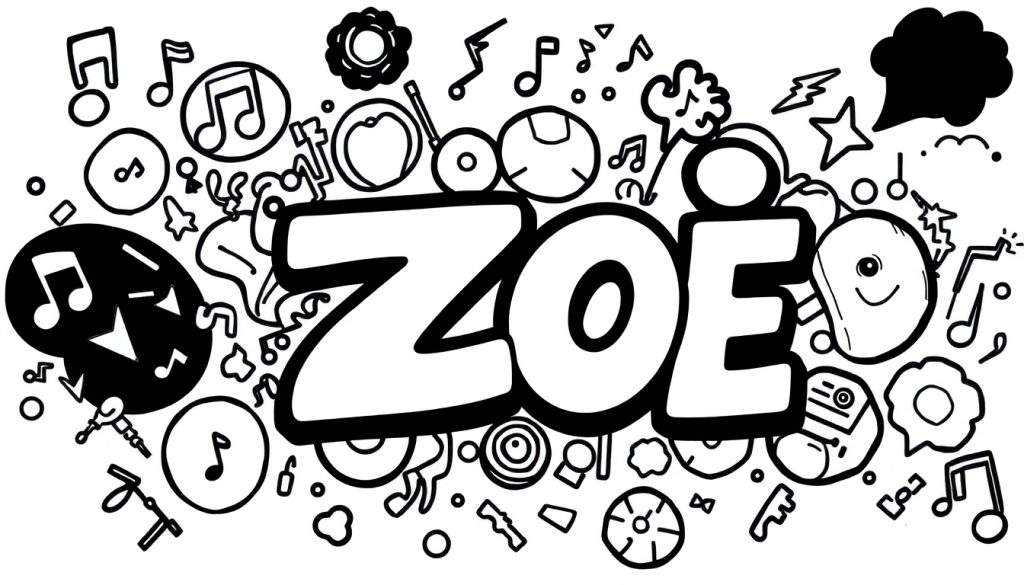 Duik in de wereld van ZOE met deze te gekke kleurplaat! 🎨 Wat een feestje van tekeningen rondom de naam! Zie je die muzieknoten? 🎶 En die platenspelers? 🎧 ZOE is helemaal klaar om ingekleurd te worden met jouw lievelingskleuren. Maak deze kleurplaat uniek en laat je fantasie de vrije loop! Wat voor avonturen gaat ZOE beleven met jouw kunstwerk? Veel kleurplezier! ✨