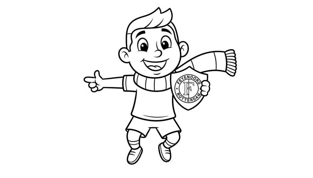 Feyenoord Kleurplaat: Vrolijke Voetbaljongen met Logo – Duim Omhoog!