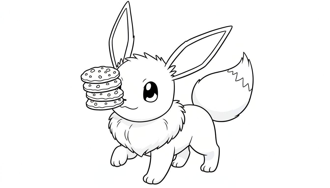 Eevee Kleurplaat | Schattige Pokémon Balanceert Koekjes | Gratis Printbaar