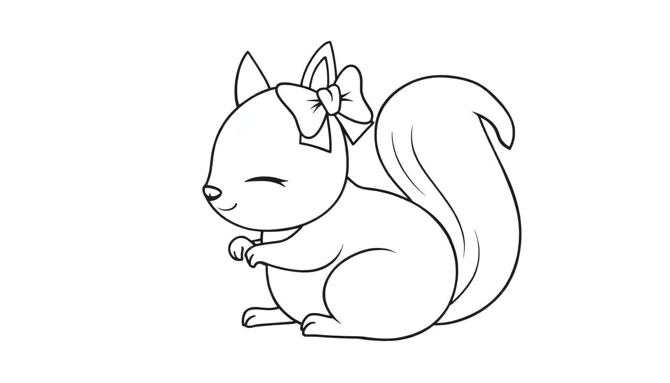 Schattige Eekhoorn Kleurplaat met Strik – Gratis Online Kleuren