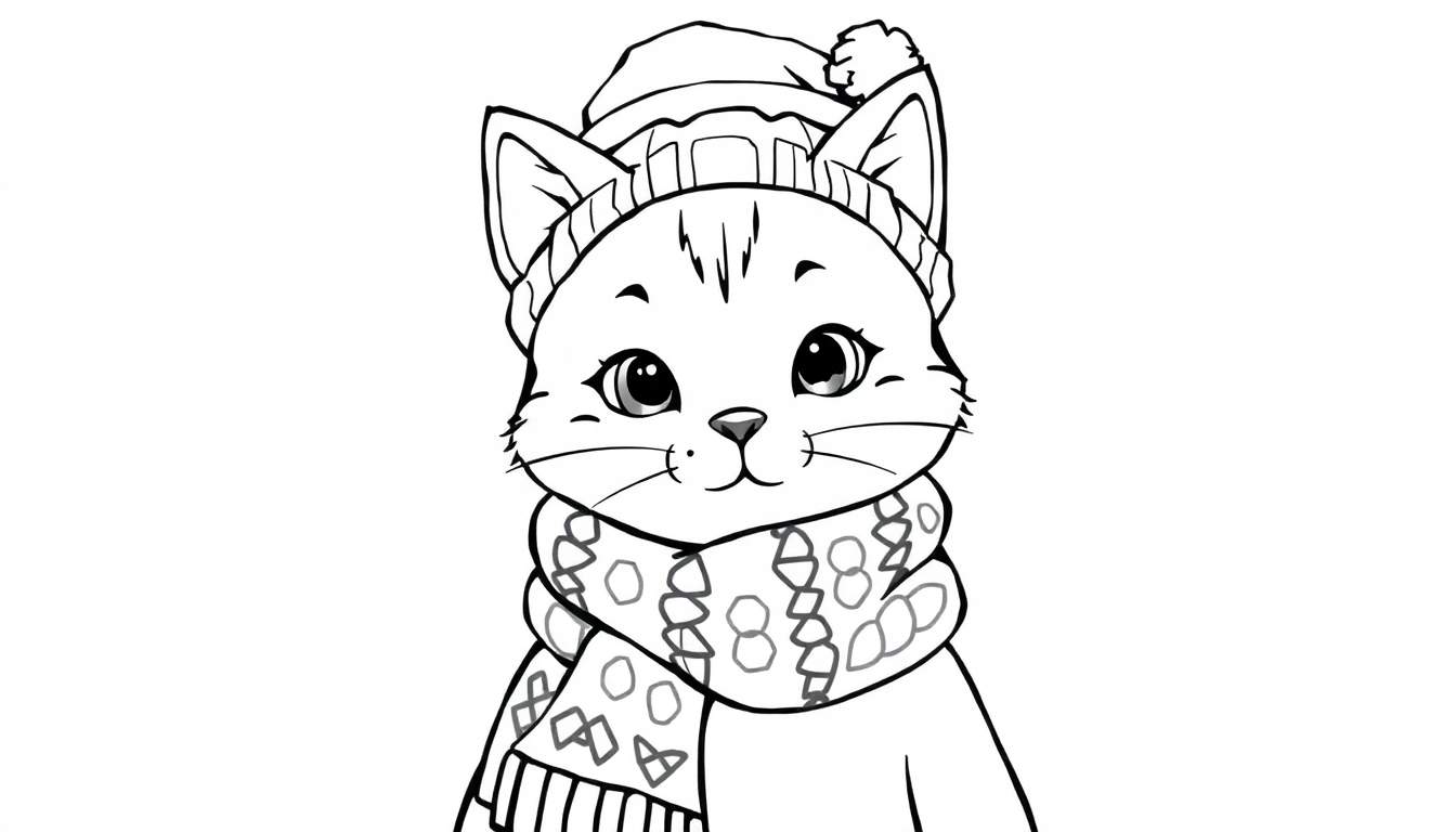 Ontdek deze schattige zwart-wit kleurplaat van een kat met een gezellige wintermuts en sjaal. Perfect voor urenlang kleurplezier! Download gratis.
