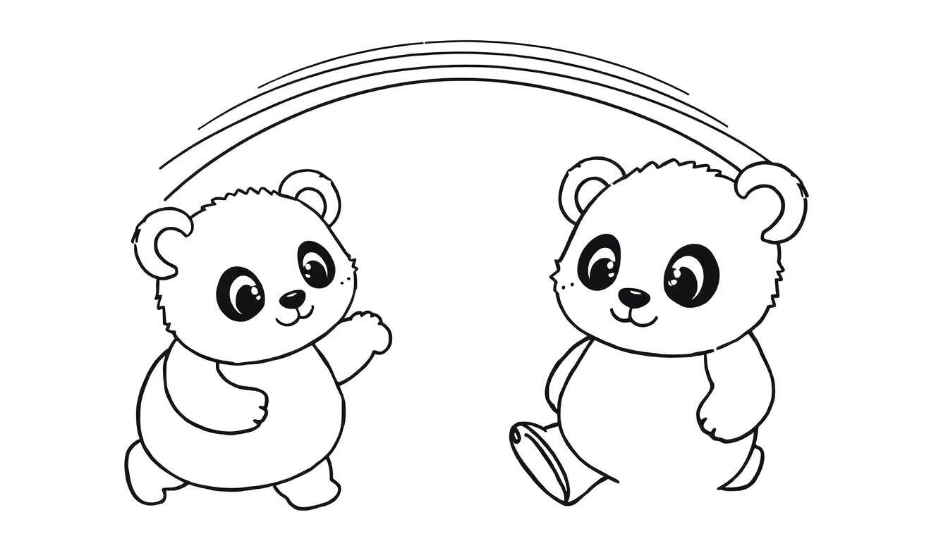 Dit plaatje straalt puur geluk uit. De dynamische houdingen van de panda’s suggereren een spel van achtervolgen of samen rennen, een scène die de harten van jong en oud zal raken. De eenvoud van de lijntekening nodigt uit tot experimenteren met kleurenpaletten: ga je voor de klassieke panda-look, of durf je het aan om ze in regenboogkleuren te hullen? Welke kleur je ook kiest, deze schattige panda’s zullen gegarandeerd een glimlach op je gezicht toveren.