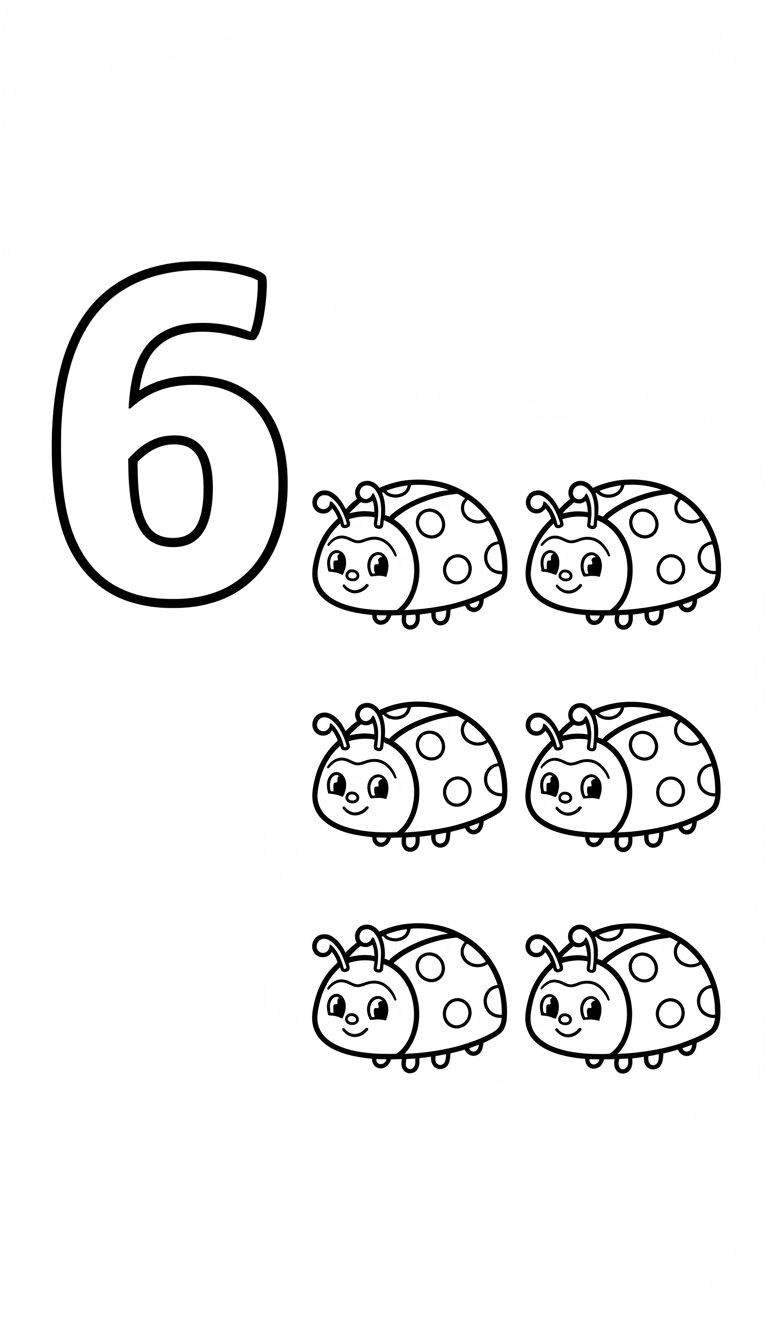 Wist je dat lieveheersbeestjes vaak als geluksbrengers worden gezien? Ze zijn niet alleen schattig om te zien met hun vrolijke stippen, maar ze zijn ook super nuttig in de tuin omdat ze bladluizen eten, wat ze tot echte kleine helden maakt! Het cijfer zes zelf heeft ook interessante kanten; het is bijvoorbeeld een ‘perfect getal’ in de wiskunde, omdat de som van zijn positieve delers (1, 2, 3) gelijk is aan het getal zelf. Deze kleurplaat brengt de magie van zowel het cijfer als deze leuke insecten samen op een educatieve en creatieve manier!