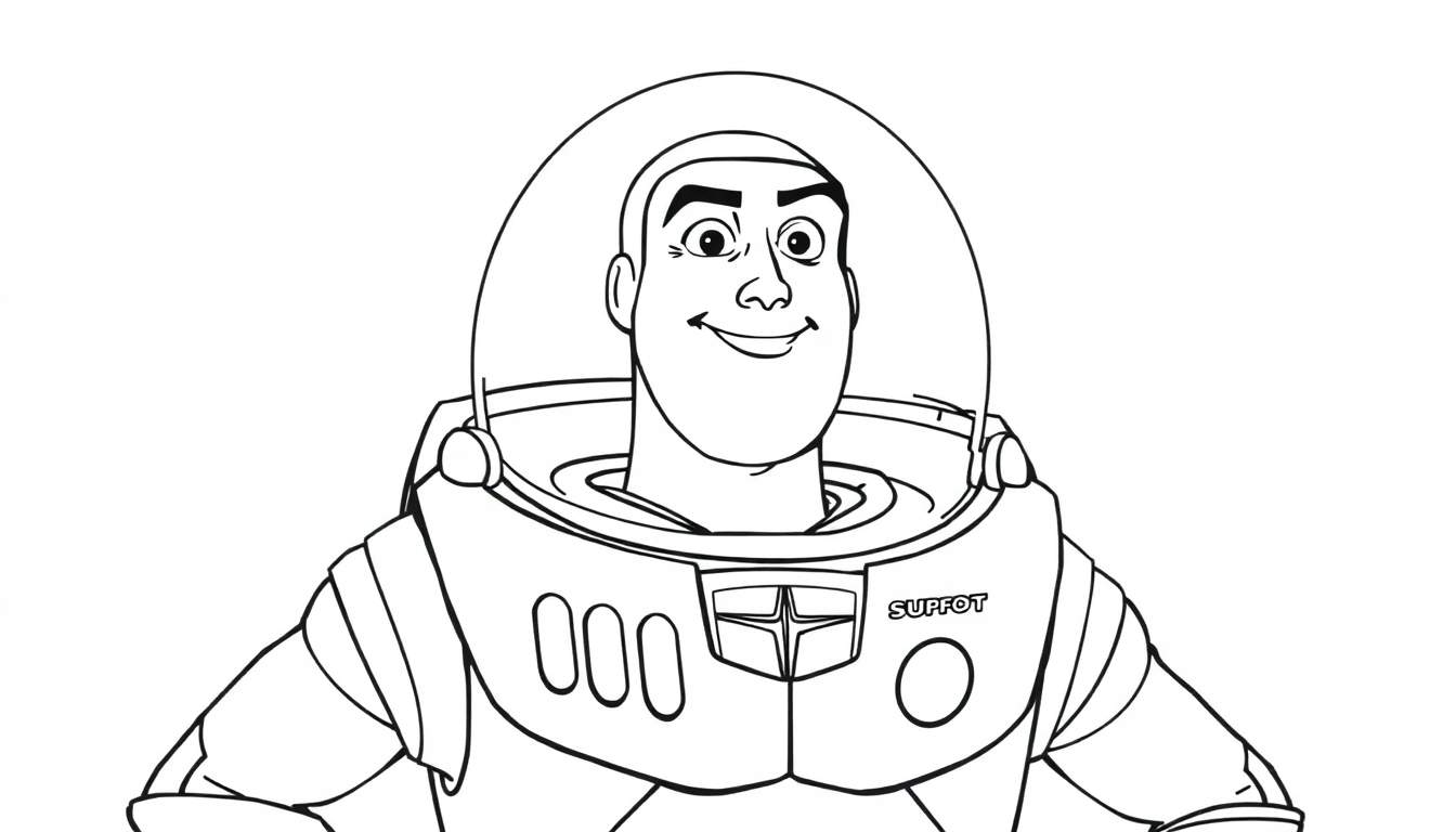 Deze kleurplaat brengt de geliefde ruimteavonturier Buzz Lightyear rechtstreeks uit de wereld van Toy Story tot leven. Met een brede, aanstekelijke glimlach en zijn iconische ruimtepak, is Buzz klaar om de fantasie van elk kind te prikkelen. De gedetailleerde lijntekening focust op zijn herkenbare helm, het indrukwekkende pak met de karakteristieke borstplaatdetails – inclusief de mysterieuze ‘SUPFOT’ tekst en het ster-embleem – en zijn vrolijke gezichtsuitdrukking. Het is een perfect canvas voor jonge kunstenaars om hun favoriete kleuren toe te voegen en Buzz een unieke uitstraling te geven.