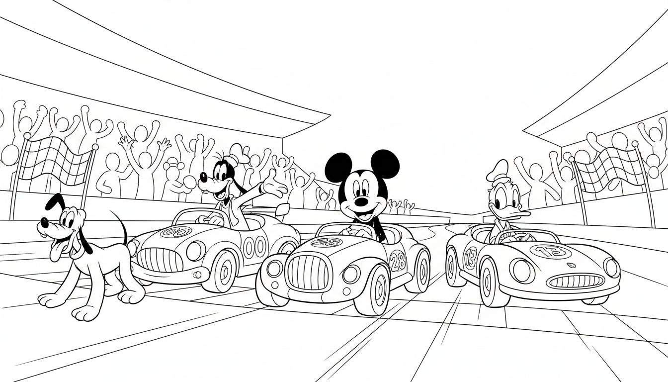 Deze kleurplaat biedt niet alleen een kans om creatief te zijn, maar ook om de klassieke Disney-personages op een nieuwe, dynamische manier te beleven. Wat voor kleuren ga jij gebruiken voor de raceauto’s, de kleding van de personages en de juichende menigte? Laat je fantasie de vrije loop en maak van deze race de meest kleurrijke ooit!