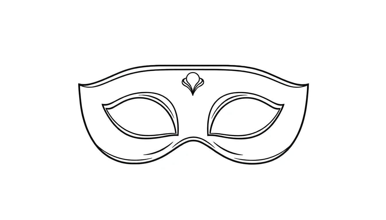 Ontdek deze gratis zwart-wit kleurplaat van een prachtig oogmasker. Perfect voor creatieve uren tijdens carnaval, maskeradefeesten of gewoon voor de lol! De dubbele lijnen en het decoratieve element maken dit een unieke tekening om in te kleuren.