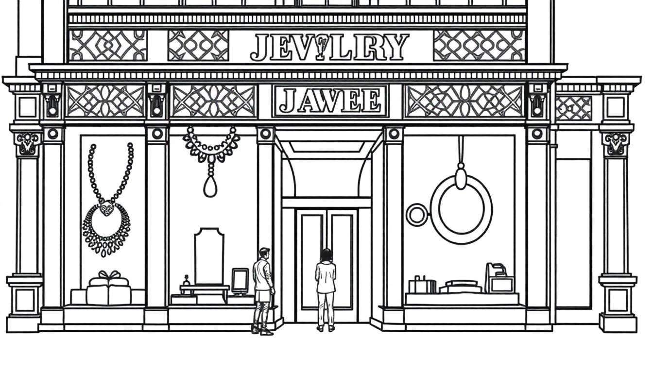 Ontdek de Glans: Een Kleurplaat van een Prachtige Juwelierszaak