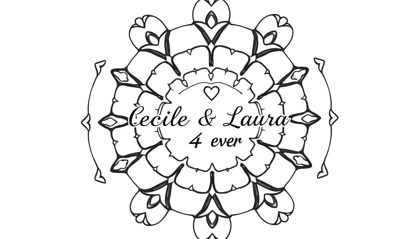 Wist je dat mandala’s oorspronkelijk uit het Sanskriet komen en ‘cirkel’ betekenen? Ze worden al eeuwenlang gebruikt in diverse culturen als een hulpmiddel voor meditatie en spirituele oefeningen, om innerlijke rust en focus te bevorderen. De symmetrie in de mandala’s helpt bij het creëren van een gevoel van orde en harmonie. Voor de tekst ‘Cecile & Laura 4 ever’ zou je kunnen kiezen om de letters van ‘Cecile’ in één kleur te houden en die van ‘Laura’ in een contrasterende, maar complementaire kleur, om hun individualiteit te vieren binnen hun verbondenheid. De ‘4 ever’ kan dan in een kleur worden gekozen die beide personen symboliseert. Vergeet niet de kleine hartjes rondom de tekst te kleuren voor een extra vleugje liefde!
