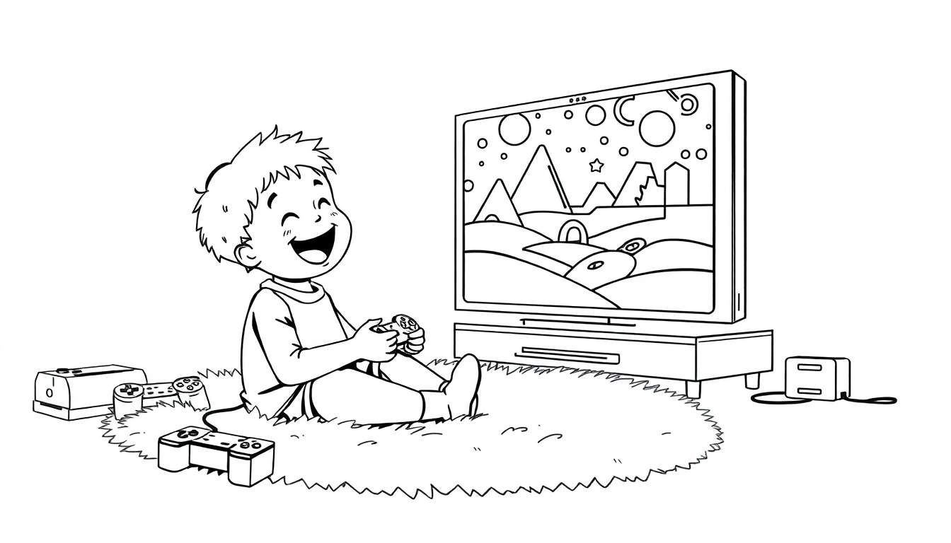 Vrolijke Jongen Gamen Kleurplaat: Plezier met Controllers en TV