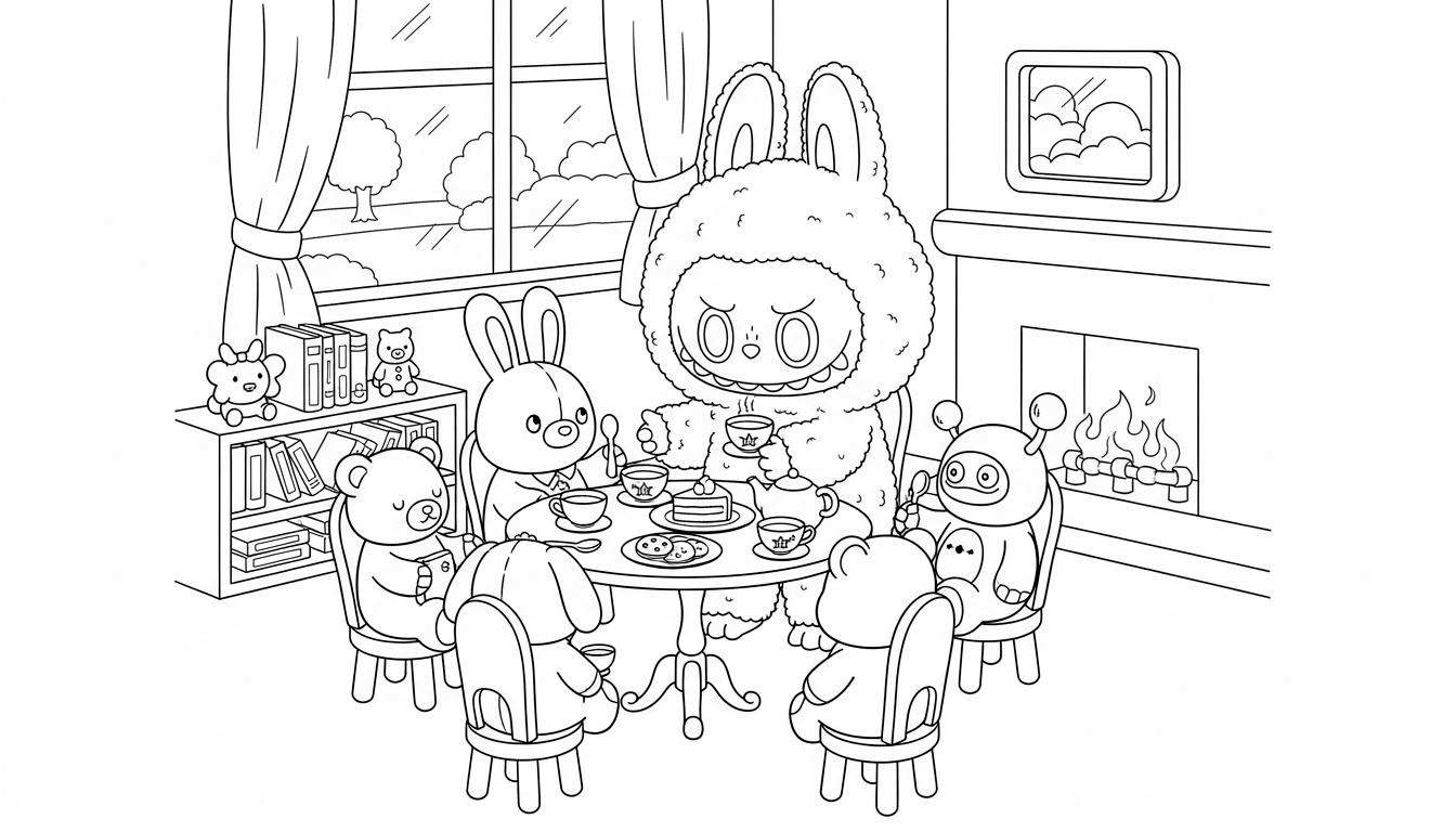 Ontdek de Gezellige Wereld van Labubu’s Theekransje Kleurplaat