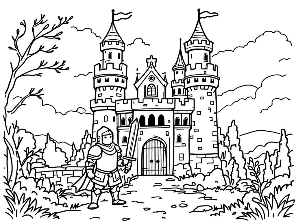 Laat je fantasie los met deze stoere ridder en het sprookjeskasteel! Geef de torens een kleurtje, bedenk een avontuurlijk landschap, en maak jouw eigen middeleeuwse kunstwerk.