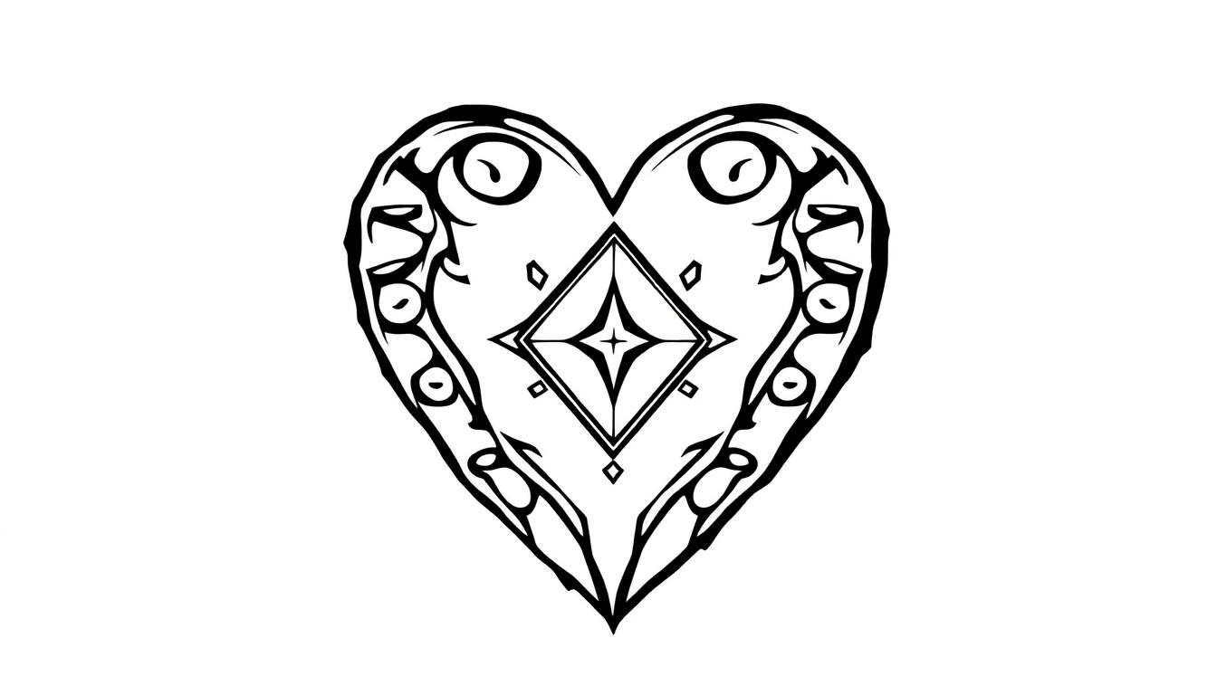 Harten zijn al eeuwenlang een universeel symbool voor liefde, passie en emotie. De gestileerde weergave in deze kleurplaat combineert deze diepe betekenis met moderne grafische esthetiek. Wist je dat de ruitvorm vaak geassocieerd wordt met stabiliteit, bescherming en focus? De integratie van de ruit in het hart kan symbool staan voor een stabiele, liefdevolle relatie of een beschermde emotionele kern. De tribale elementen en cirkels kunnen verwijzen naar verbinding, eenheid en de cyclische aard van het leven. Deze kleurplaat is niet zomaar een afbeelding om in te kleuren; het is een canvas voor jouw eigen interpretaties en verhalen. Gebruik levendige kleuren om de passie te uiten, zachte tinten voor rust, of ga voor een gedurfde zwart-wit look om de grafische elegantie te benadrukken. Laat je creativiteit de vrije loop en maak van dit gestileerde hart jouw persoonlijke meesterwerk!