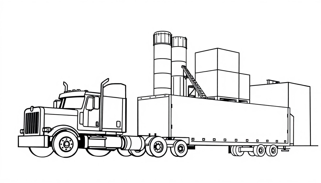 Deze intrigerende kleurplaat toont een machtige vrachtwagencombinatie, klaar voor een zware taak. Het voorste deel, de trekker, is herkenbaar aan zijn imposante lange motorkap en de stoere uitlaatpijpen die trots omhoogsteken. De vrachtwagen staat op het punt een buitengewone lading te vervoeren, wat de tekening een element van mysterie en avontuur geeft. De schematische, maar duidelijke lijnen nodigen uit om tot leven te worden gebracht met kleur.