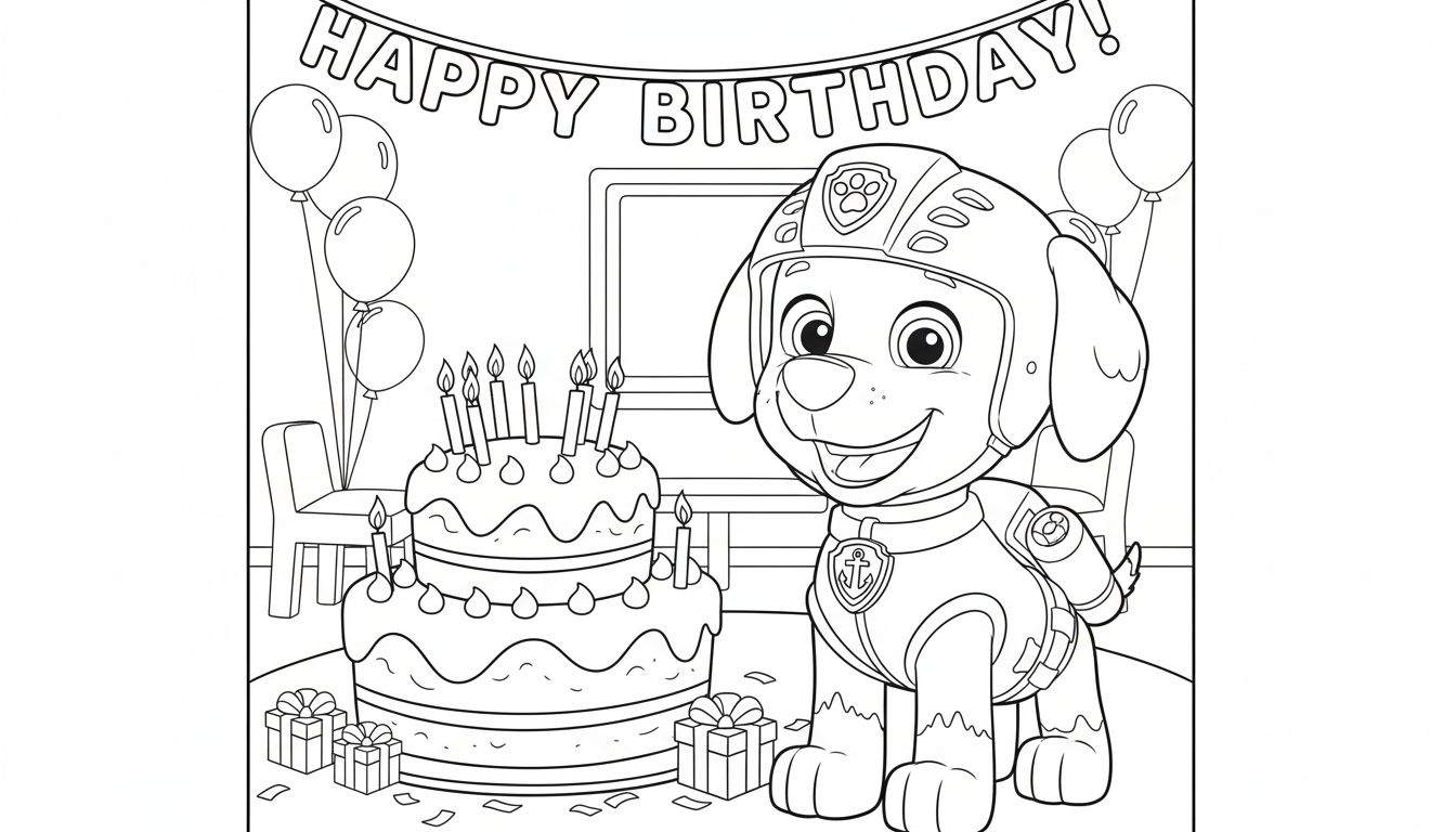 Marshall Paw Patrol Verjaardag Kleurplaat | Feestelijke Brandweer Puppy