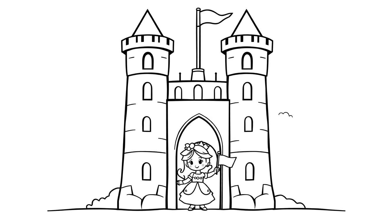 Wist je dat veel oude kastelen werden gebouwd op strategische hoogtes, zoals heuvels, om ze beter te kunnen verdedigen? Dit kasteel op de kleurplaat lijkt ook op zo’n plek te staan! De vlag op de mast zou de wapenkleuren van het koninkrijk kunnen tonen, of een speciale boodschap voor alle bezoekers. En die prinses met haar witte vlaggetje? Misschien wacht ze op haar prins, of bereidt ze een koninklijk feest voor! Wat voor kleur zou jij haar jurk geven? En welke avonturen beleeft ze vandaag?