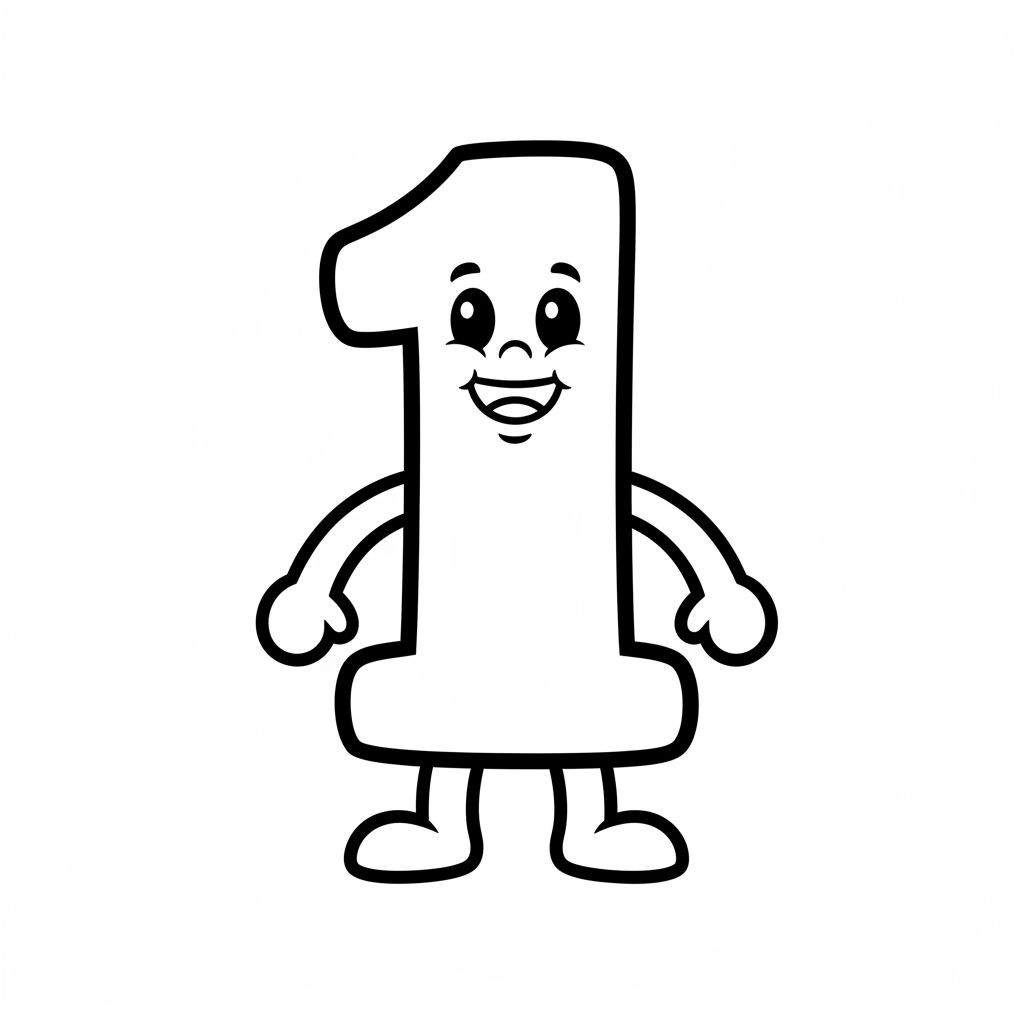 Cijfer Eén Kleurplaat | Vriendelijk Figuurtje voor Kinderen