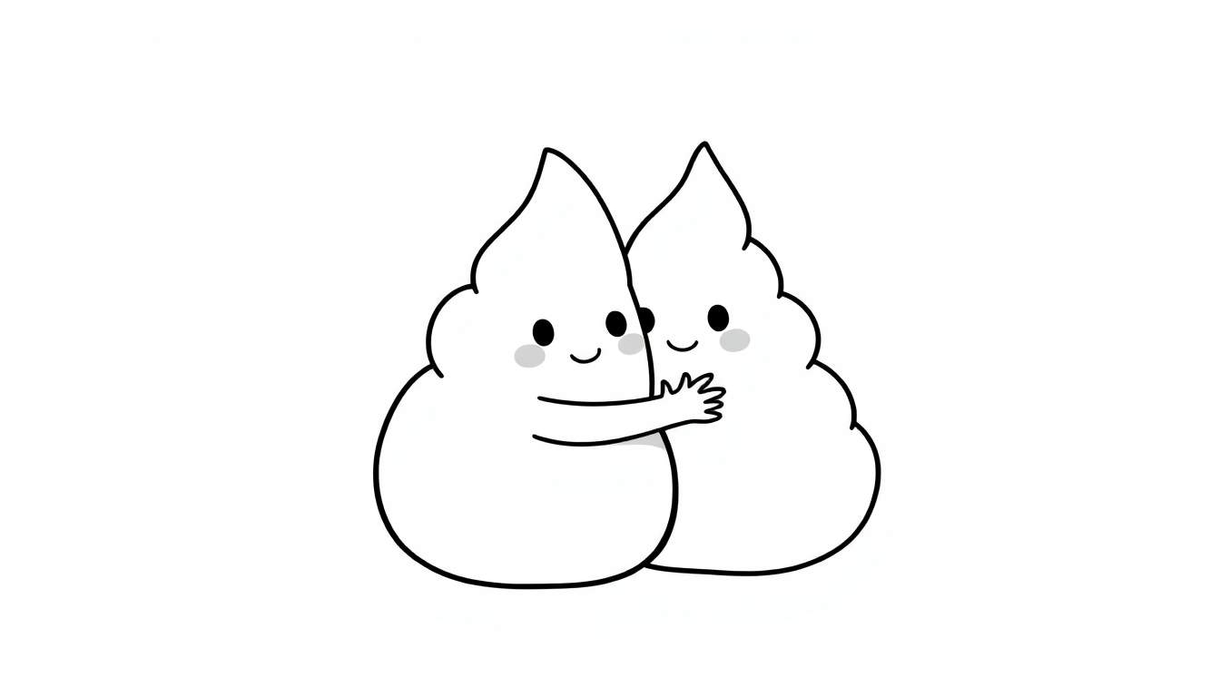 Een schattige zwart-wit kleurplaat met twee wolk-achtige wezentjes die elkaar liefdevol omhelzen. Perfect voor kinderen om in te kleuren en hun creativiteit de vrije loop te laten.