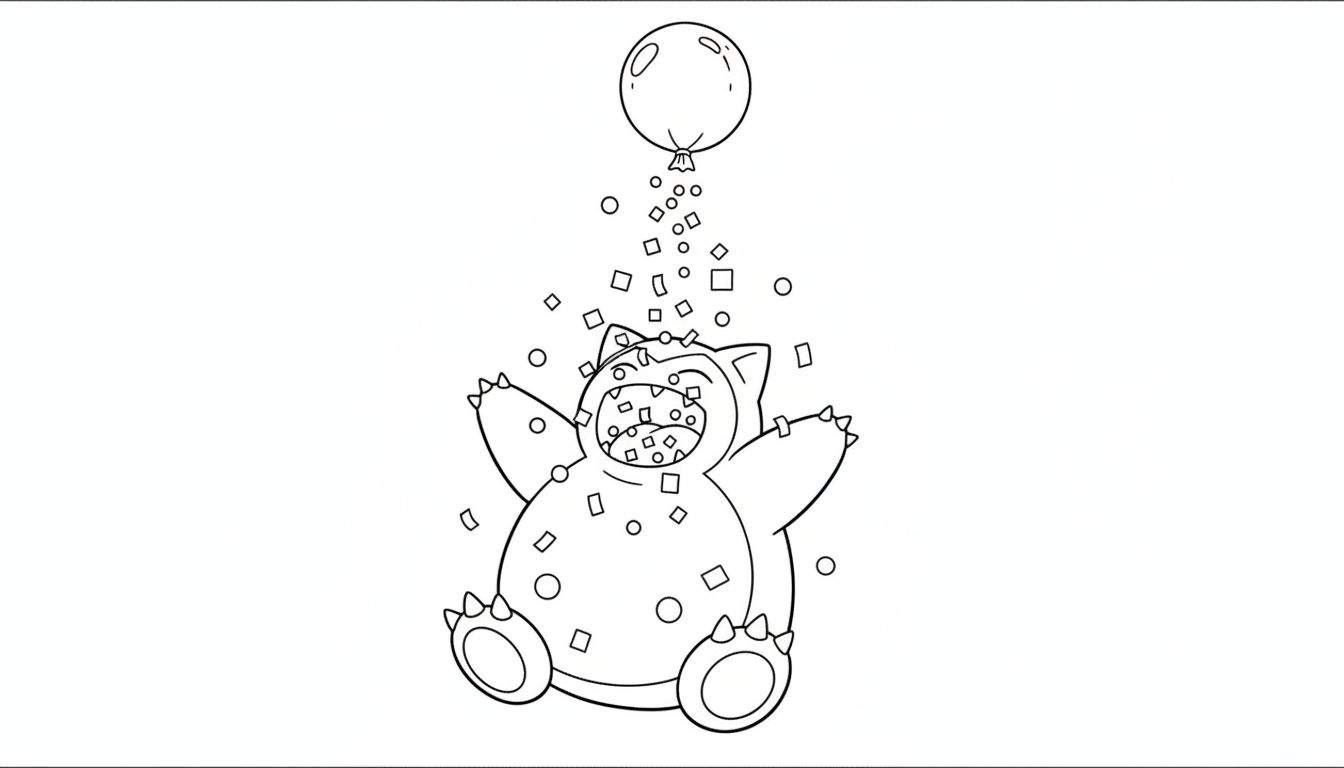 Snorlax staat bekend om zijn enorme eetlust en de neiging om in slaap te vallen na een flinke maaltijd. Het in de kleurplaat afgebeelde moment is dan ook typerend voor zijn karakter: altijd klaar voor een lekkernij! Bij het inkleuren kun je de ballon een vrolijke kleur geven, de ‘snoepjes’ in allerlei smaken laten stralen en Snorlax zijn kenmerkende turquoise buik en donkerblauwe vacht geven, waardoor hij nog vrolijker wordt.