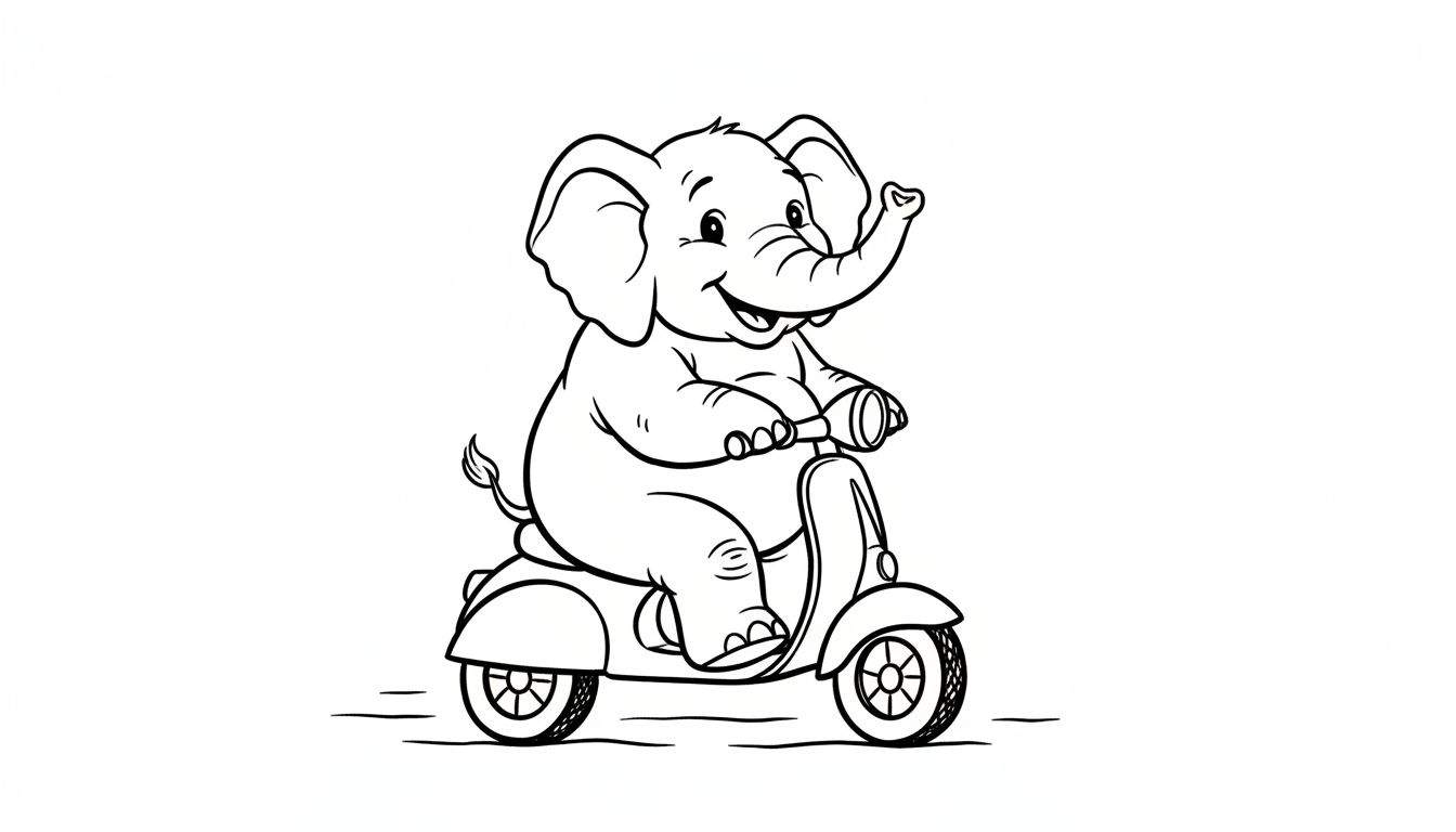 Ontdek de Vrolijke Olifant op Scooter Kleurplaat!