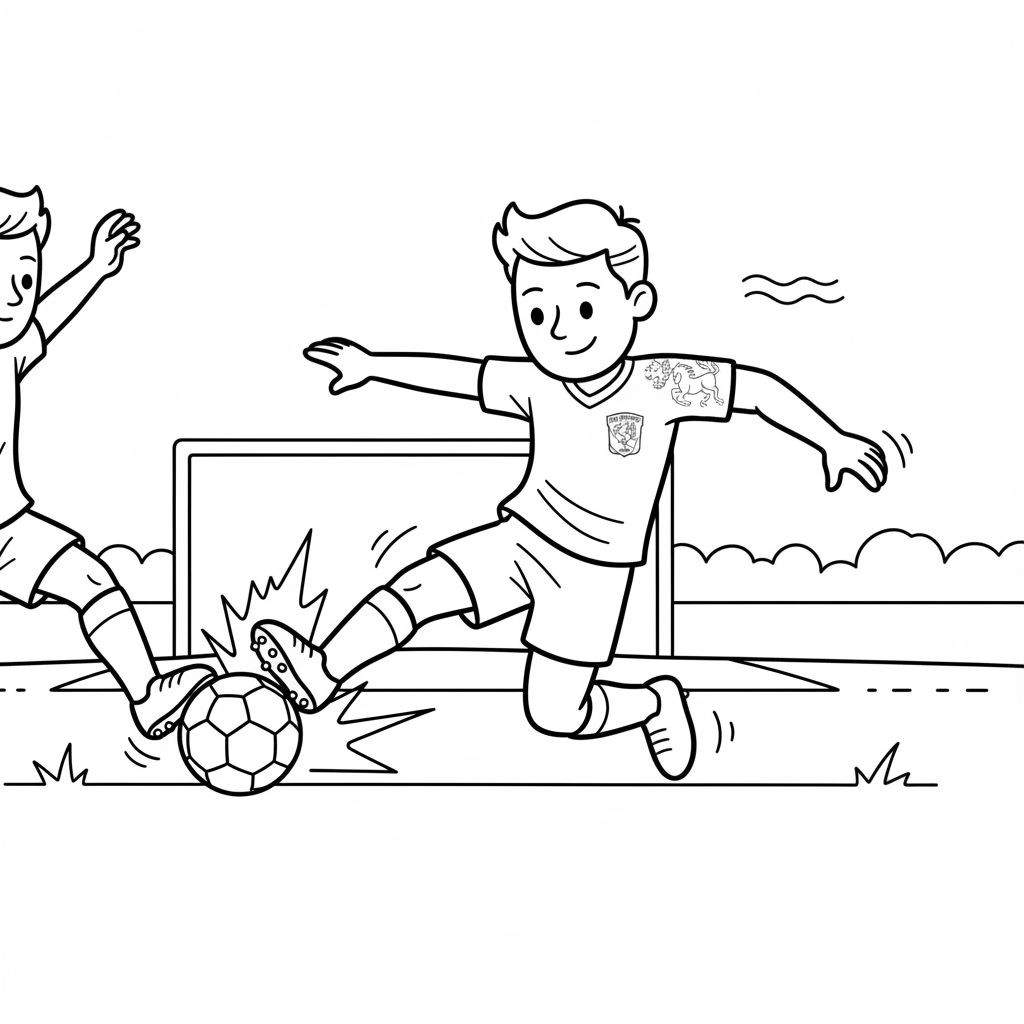FC Twente Kleurplaat: Jonge Voetballer Schopt Bal bij Doel