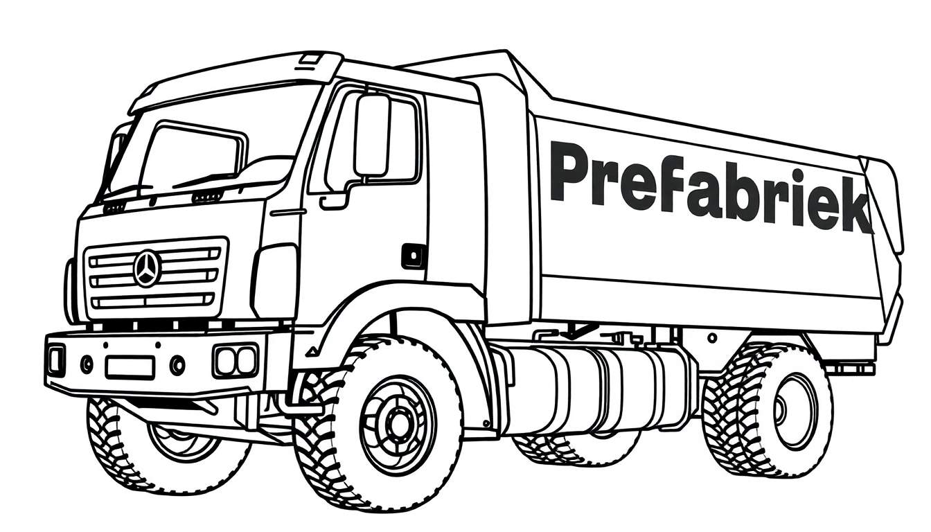 Het kiezen van de juiste kleuren kan dit voertuig transformeren. Ga je voor klassiek geel en rood, de traditionele kleuren van veel bouwmachines? Of misschien een gedurfde blauwe cabine met een fel oranje laadbak? De mogelijkheden zijn eindeloos en elk kind kan zijn eigen unieke ‘Prefabriek’ vrachtwagen creëren. Dit soort kleurplaten helpt niet alleen bij het ontwikkelen van fijne motoriek, maar stimuleert ook de verbeelding en kan leiden tot interessante gesprekken over wat deze vrachtwagen vervoert of waar hij naartoe gaat.
