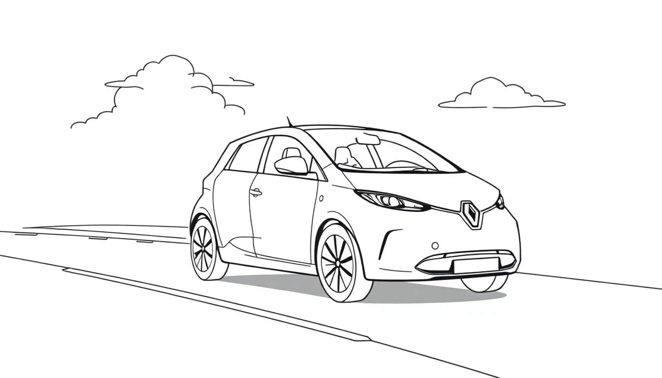 Deze kleurplaat toont een stijlvolle, moderne compacte auto. De hatchback is in een dynamisch driekwart vooraanzicht getekend, waardoor alle details goed zichtbaar zijn. Van de scherpe koplampen tot de herkenbare grille met een logo dat doet denken aan Renault, en de zijspiegel die de omgeving reflecteert – elk element is met zorg uitgelijnd. De deuren en de antenne op het dak nodigen uit tot verbeelding, terwijl de subtiele schaduw onder de auto de suggestie van beweging geeft. Dit is de ideale tekening voor iedereen die houdt van auto’s en graag zijn creativiteit de vrije loop laat met kleur.