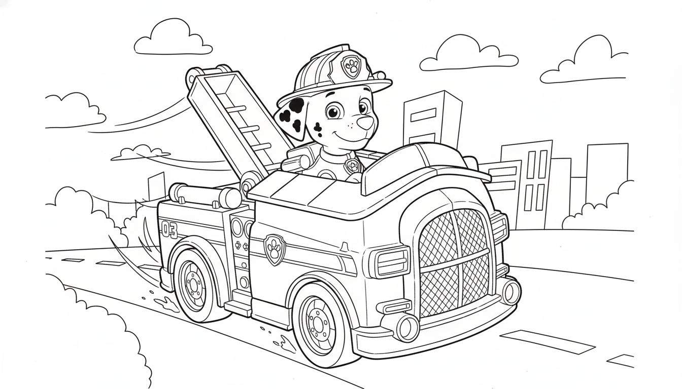 Marshall Paw Patrol Kleurplaat: Brandweerwagen Avontuur | Gratis Printen